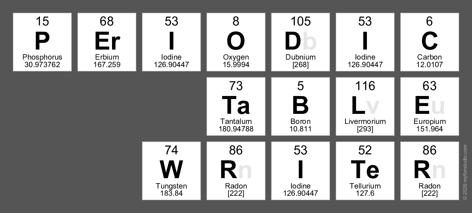 Write your name or slogan using elements of the Periodic Table!